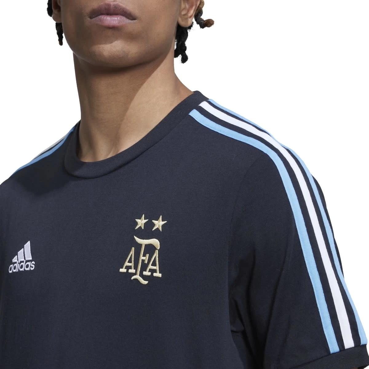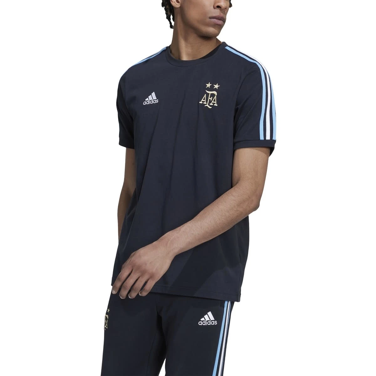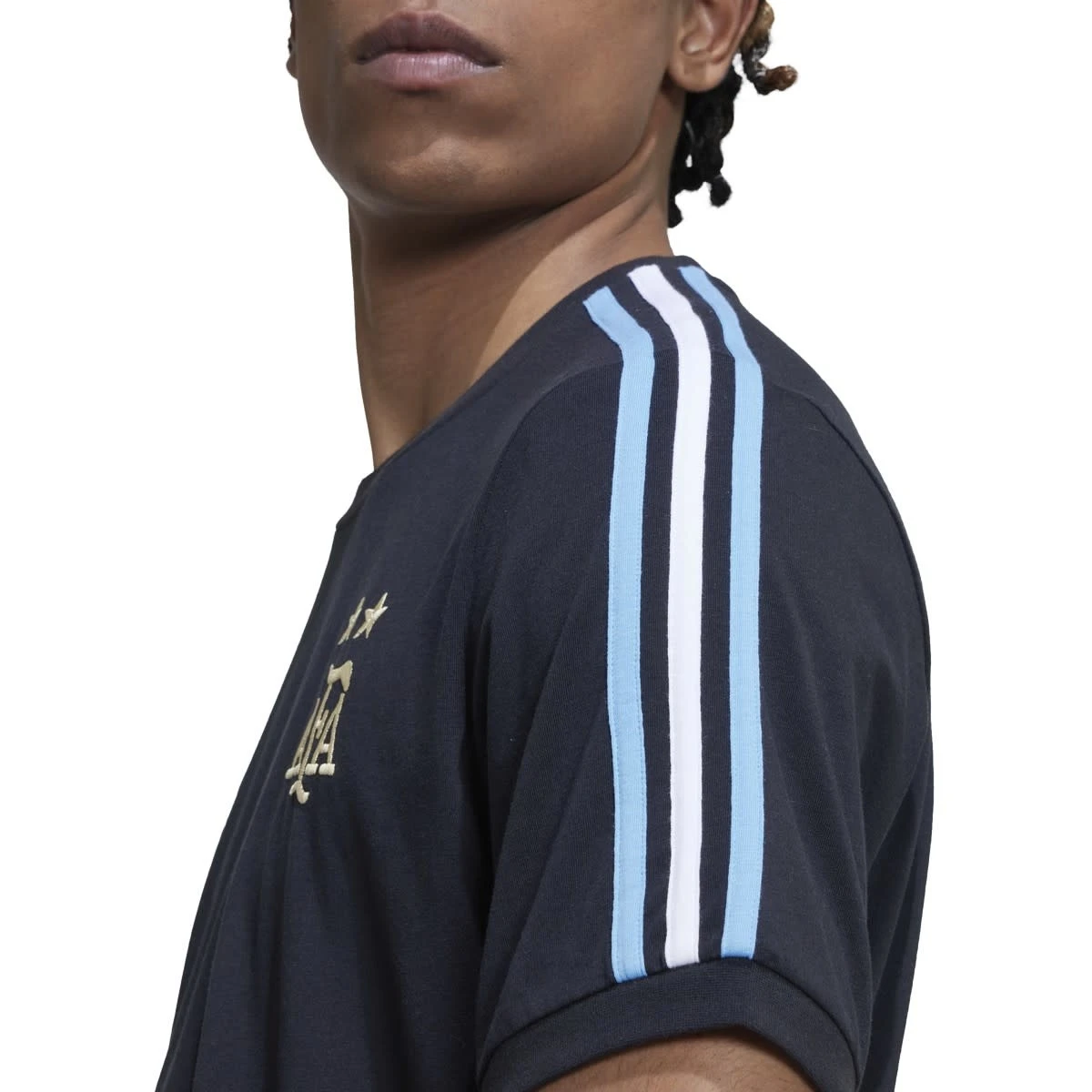 Argentina DNA. 3-Stripes style. Show your appreciation for the beautiful game in this adidas tee. Detailed in gold, a woven badge on the chest puts your football identity beyond dispute. Soft single jersey fabric adds comfort to that pride. Our cotton products support more sustainable cotton farming.