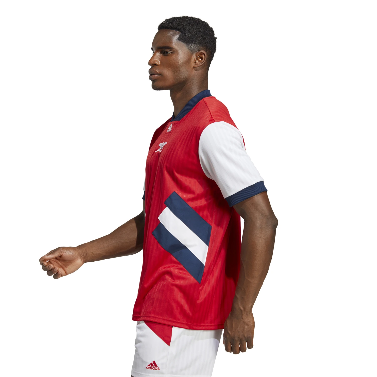 AN ADIDAS EQUIPMENT-INSPIRED JERSEY FOR GUNNERS FANS, MADE WITH RECYCLED MATERIALS.