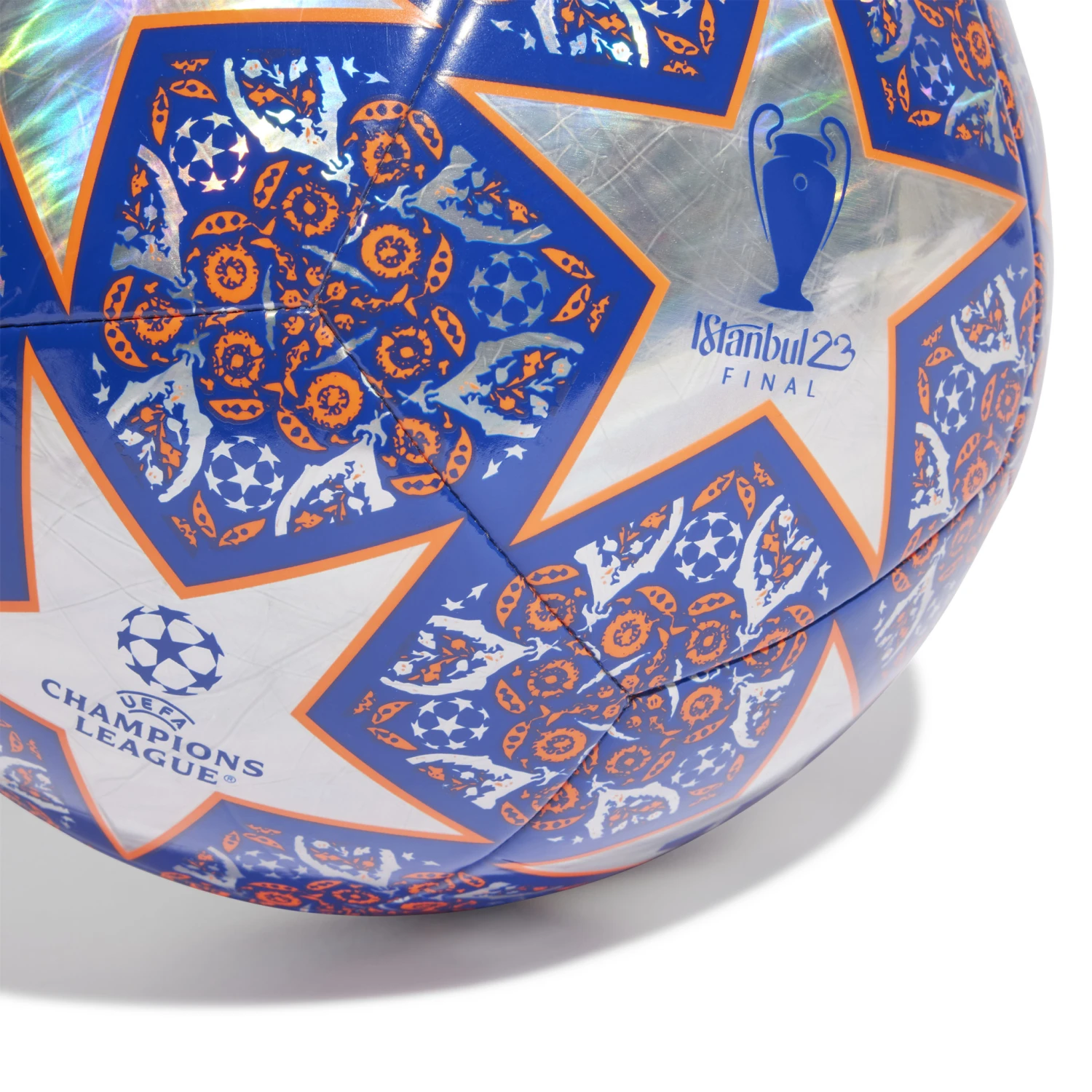 Watch the stars align for Istanbul in 2023. The intricate design on this adidas UCL training football takes its inspiration from the official match ball used in the UEFA Champions League knockout stages. Behind those eye-catching graphics and holographic details, a machine-stitched construction and butyl bladder bring rugged durability, making it perfect for repetitive use.