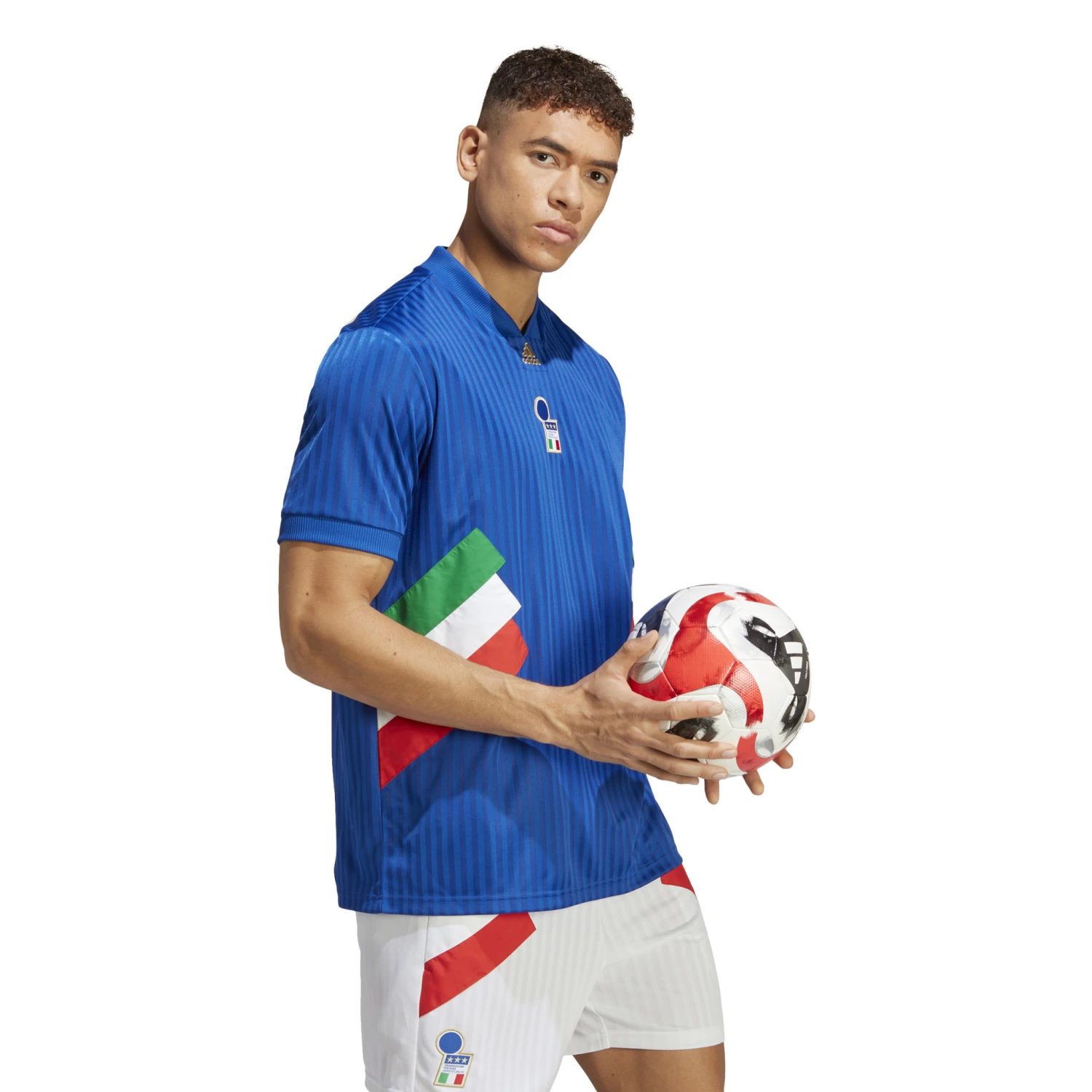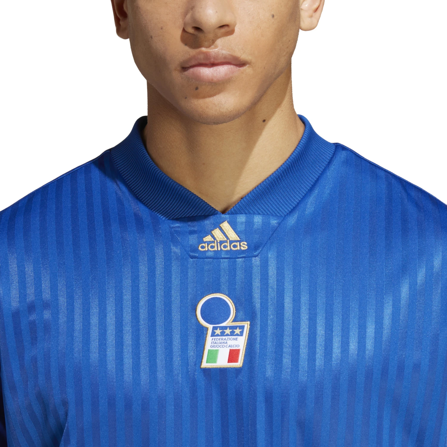 The 1990s kicked off with soccer’s biggest tournament on Italian soil. This Italy jersey celebrates the decade the beautiful game turned up the volume with adidas Equipment-style details. From its centrally placed, ’90s-style badge to its bold 3-Stripes and loose fit, the shirt is every inch an icon.