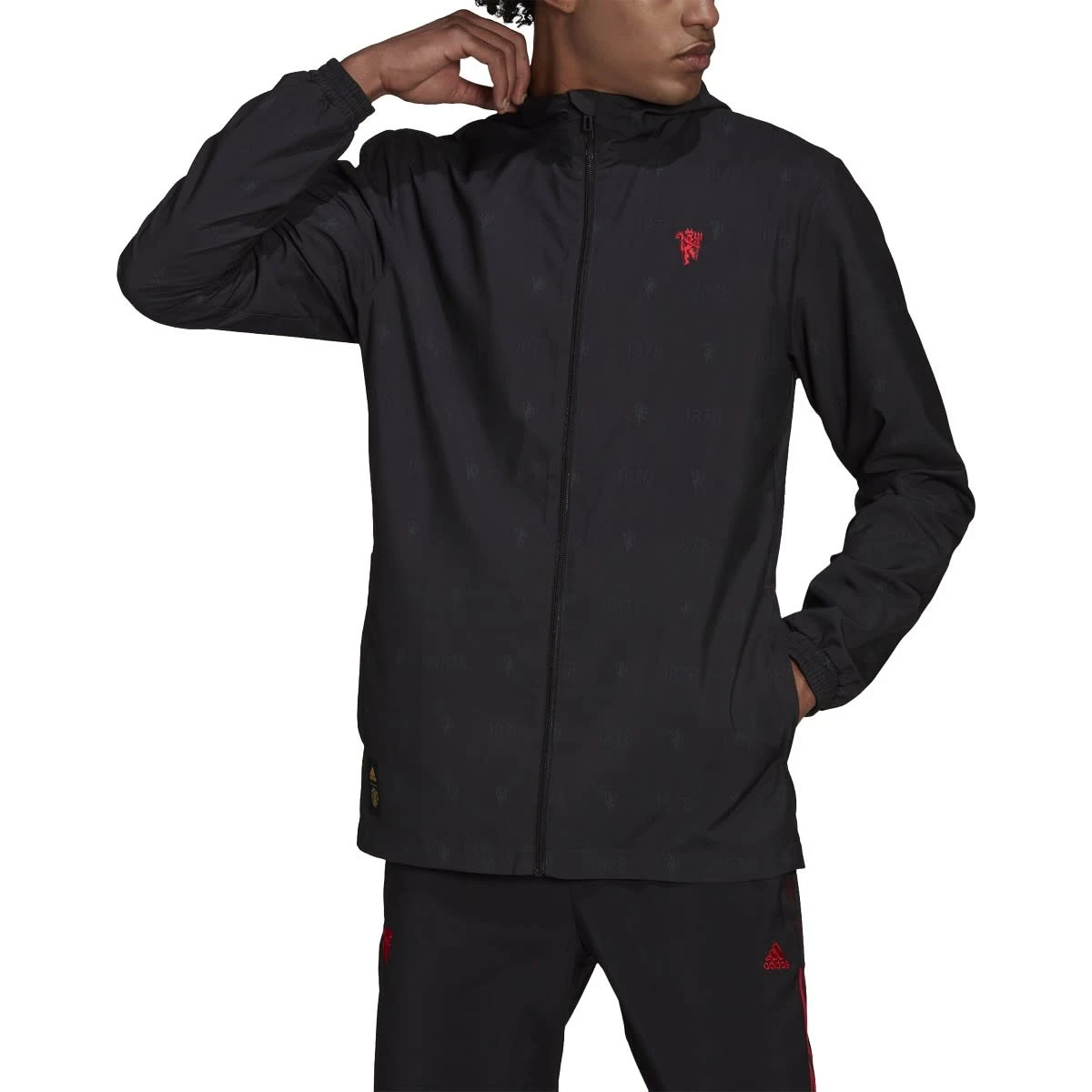 A BOLD MAN UTD WINDBREAKER MADE WITH RECYCLED MATERIALS.