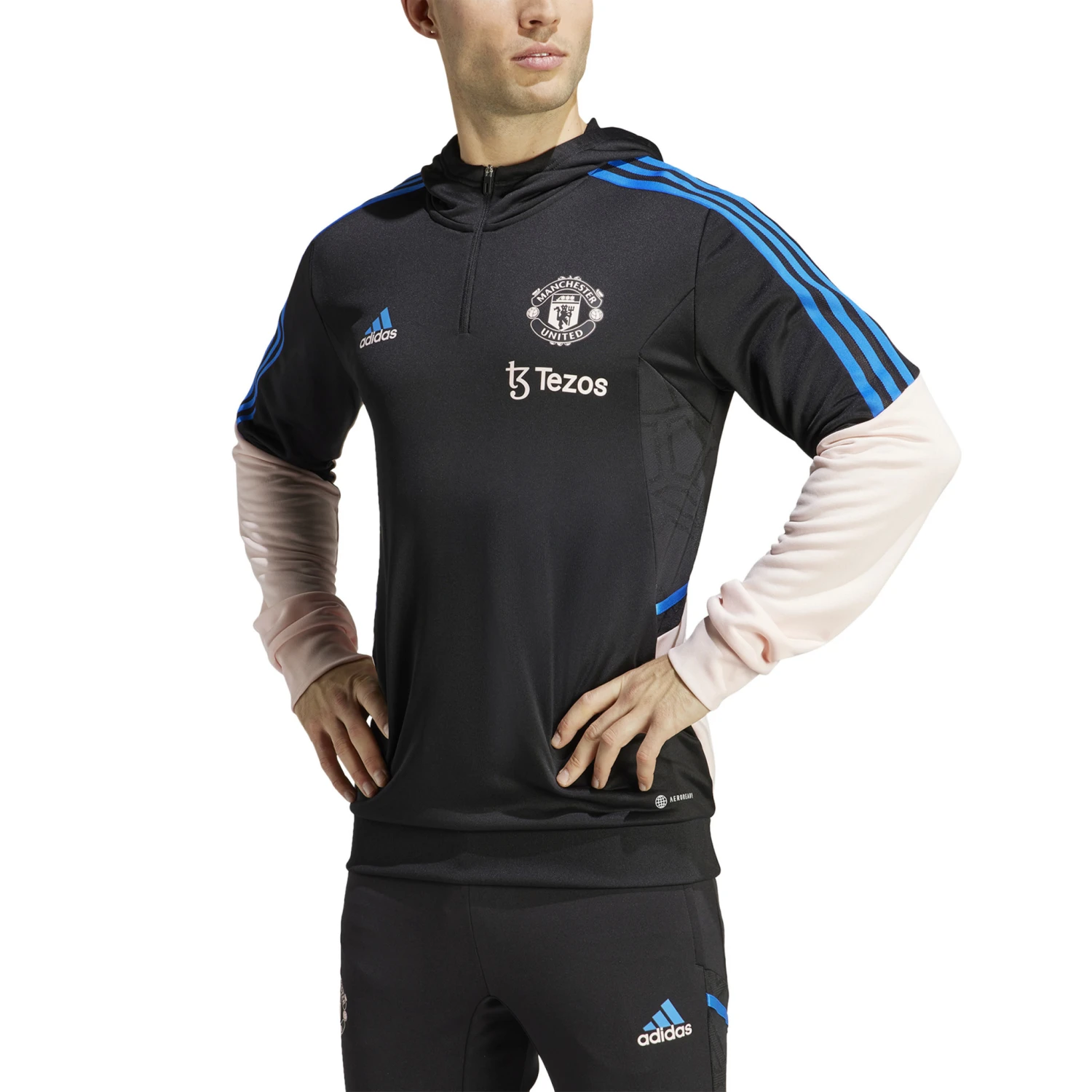 Rep the Red Devils in adidas soccer style. This Manchester United hoodie displays a heat-transfer team crest and two-color adidas Badge of Sport to keep you standing out from the crowd. Soft French terry fabric, mesh inserts and moisture-absorbing AEROREADY will ensure you stay comfortable wherever your beautiful game takes you.