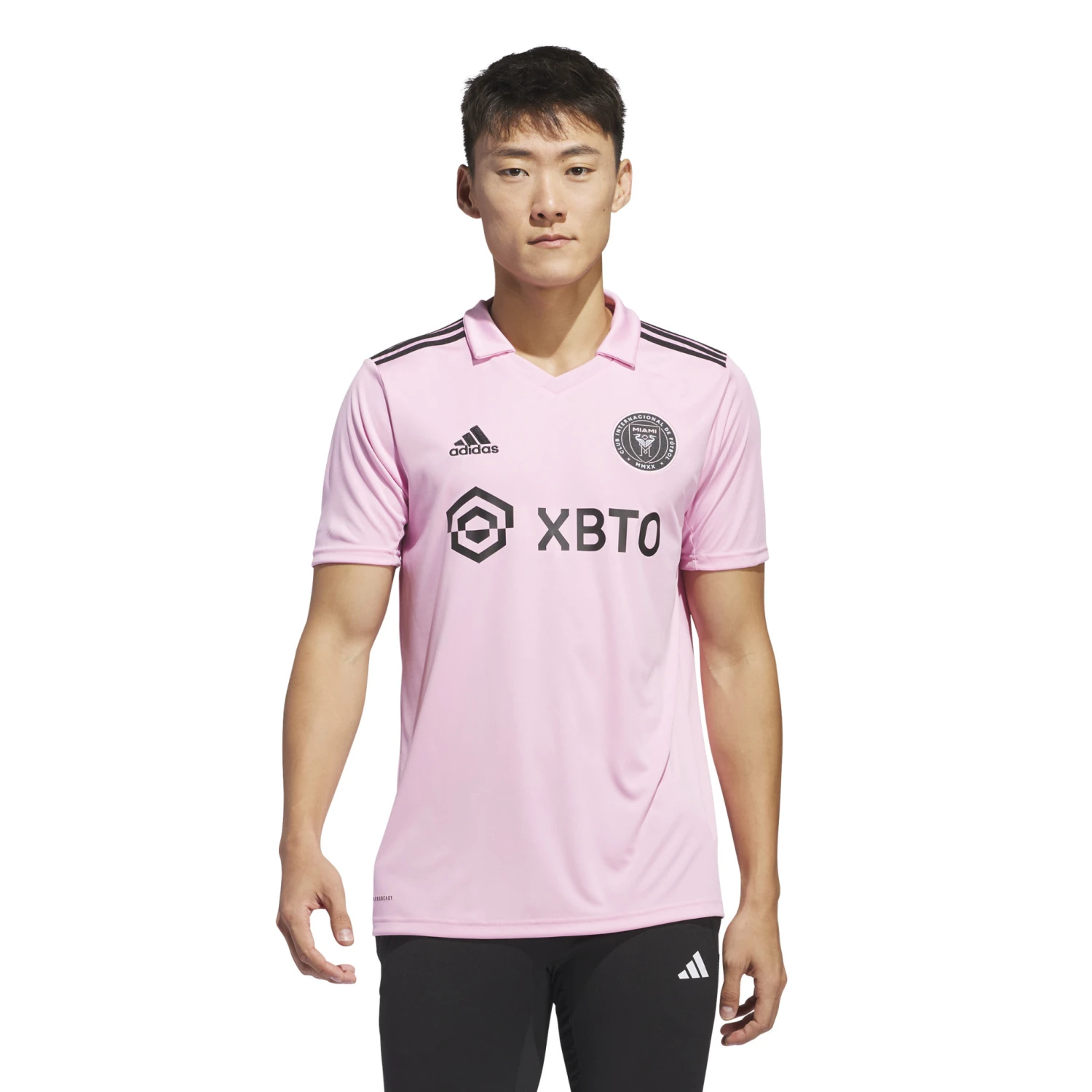 Proud to represent. In 22/23, pink dominates Inter Miami CF’s home kit for the first time. Teamed with a polo collar, the ocean sunset hues help this adidas soccer jersey shine. Created with fans in mind, its mesh inserts and moisture-absorbing AEROREADY will keep you as relaxed as an evening on the beach.