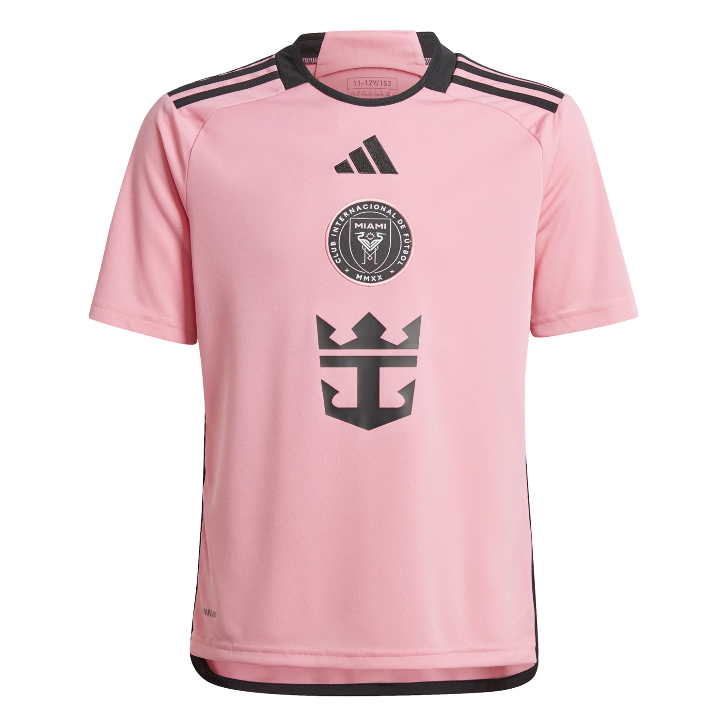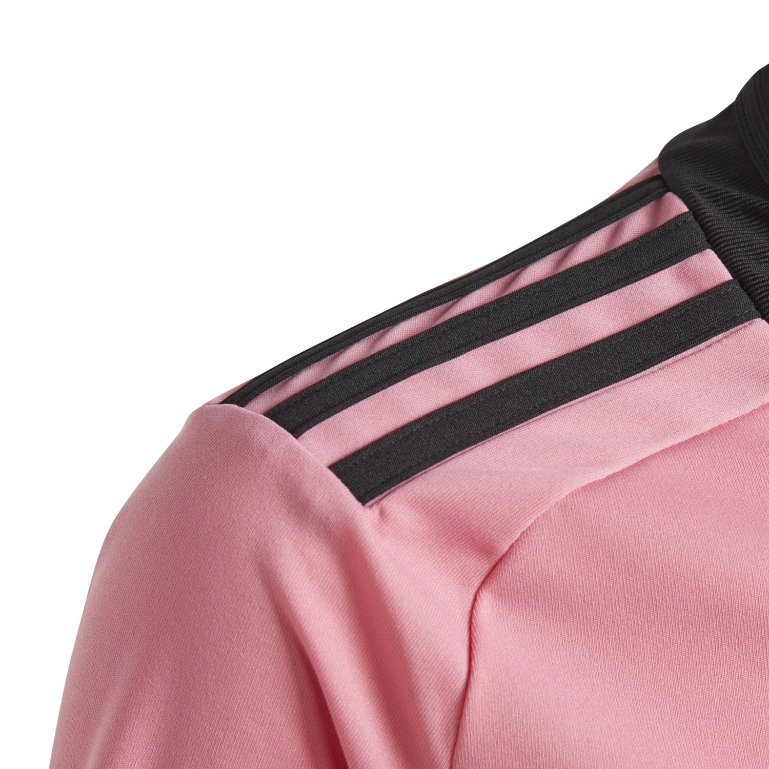 Proud. Passionate. Pink. Showing off a new shade for a new season, this juniors’ adidas Inter Miami CF jersey stands out in the club’s signature home colors. Contributing to the clean, classy design, the team badge and 3 Bar Logo move to the center, while Messi’s name and number ooze star quality on the back. Behind those superstar looks, AEROREADY wicks moisture to keep soccer fans comfortable.