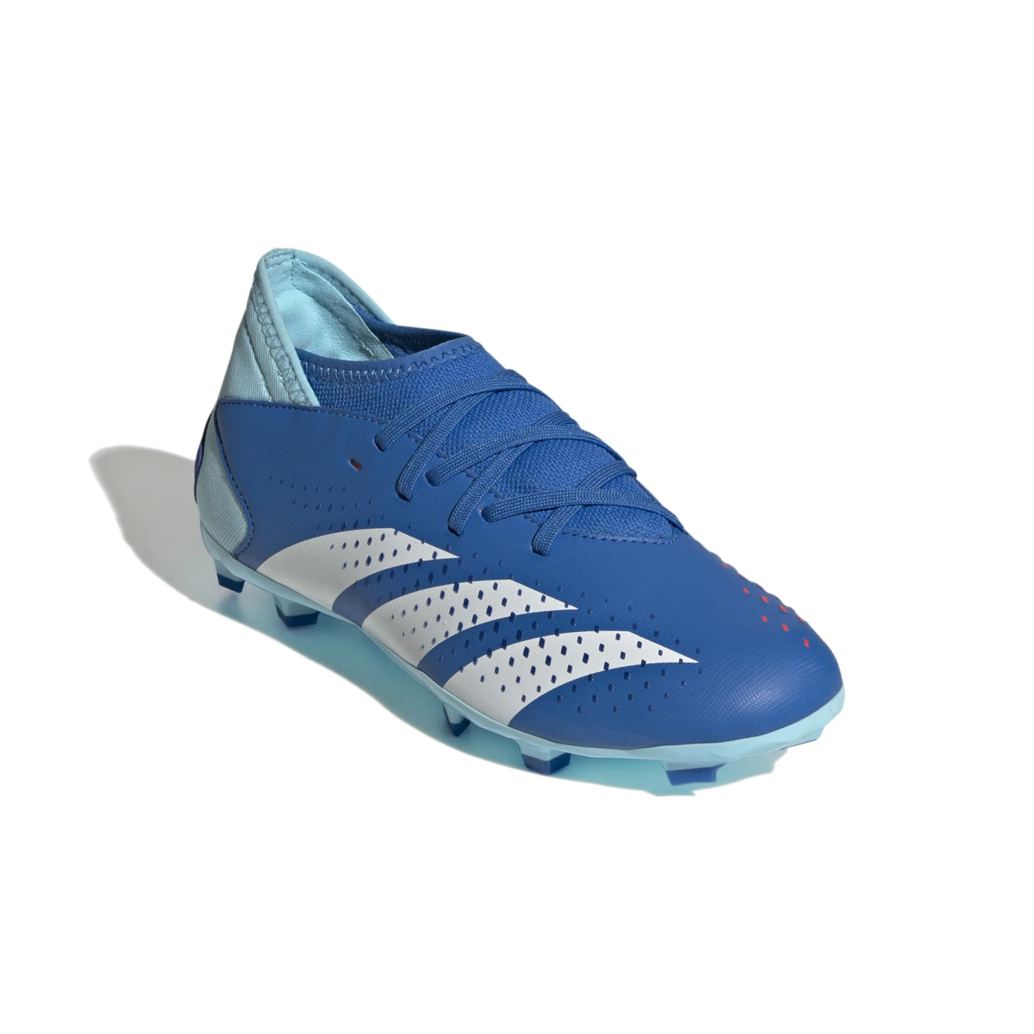 Top corner. Bottom corner. All the corners. adidas Predator Accuracy is crafted for goalscoring, so you know the ball will find the net. The fun’s in choosing how it gets there. These juniors’ soccer cleats have a soft synthetic forefoot that’s covered in High Definition Texture for added grip on the ball. The firm ground outsole specializes in keeping you in control on dry, natural grass pitches.