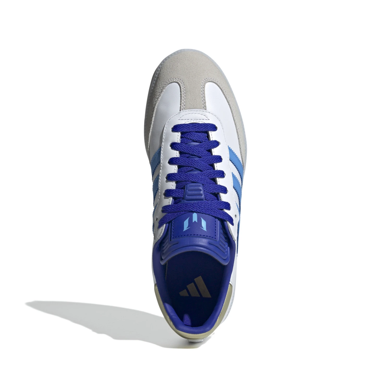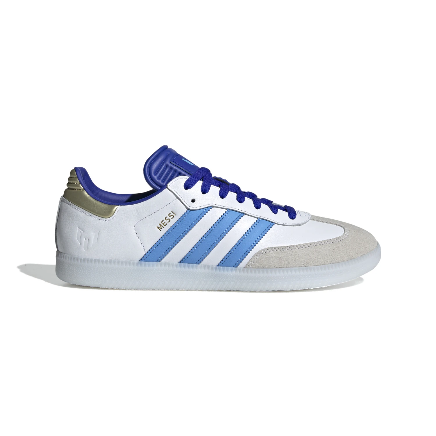 Celebrate a soccer genius in the colors of his world champion team. Developed for quick feet on and off the futsal court, these limited-edition adidas Samba boots come in Argentina’s iconic blue and white. Gold details pay tribute to that memorable win in Qatar and Messi’s name and logo celebrate the team’s legendary number 10. Underneath, a gum rubber outsole grips the ground to keep up with your every move.