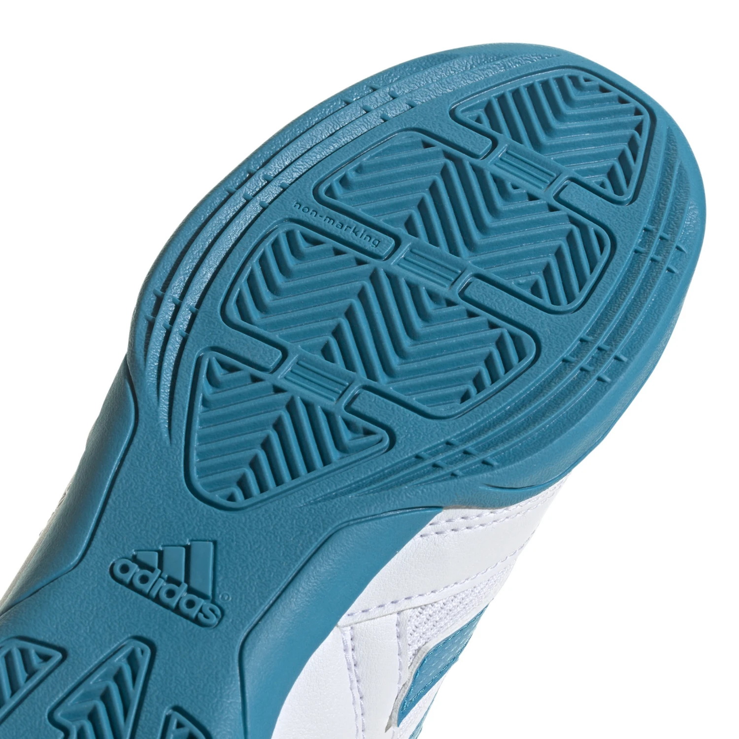 Everything you need to rule the futsal court. Pull on these adidas soccer shoes to stay comfortable and competitive when the indoor action clicks up a gear. Made to fit a range of foot shapes, the soft synthetic upper has a mesh tongue for added breathability and forefoot stitching for quick control. Down below, a rubber outsole helps you react on flat surfaces.