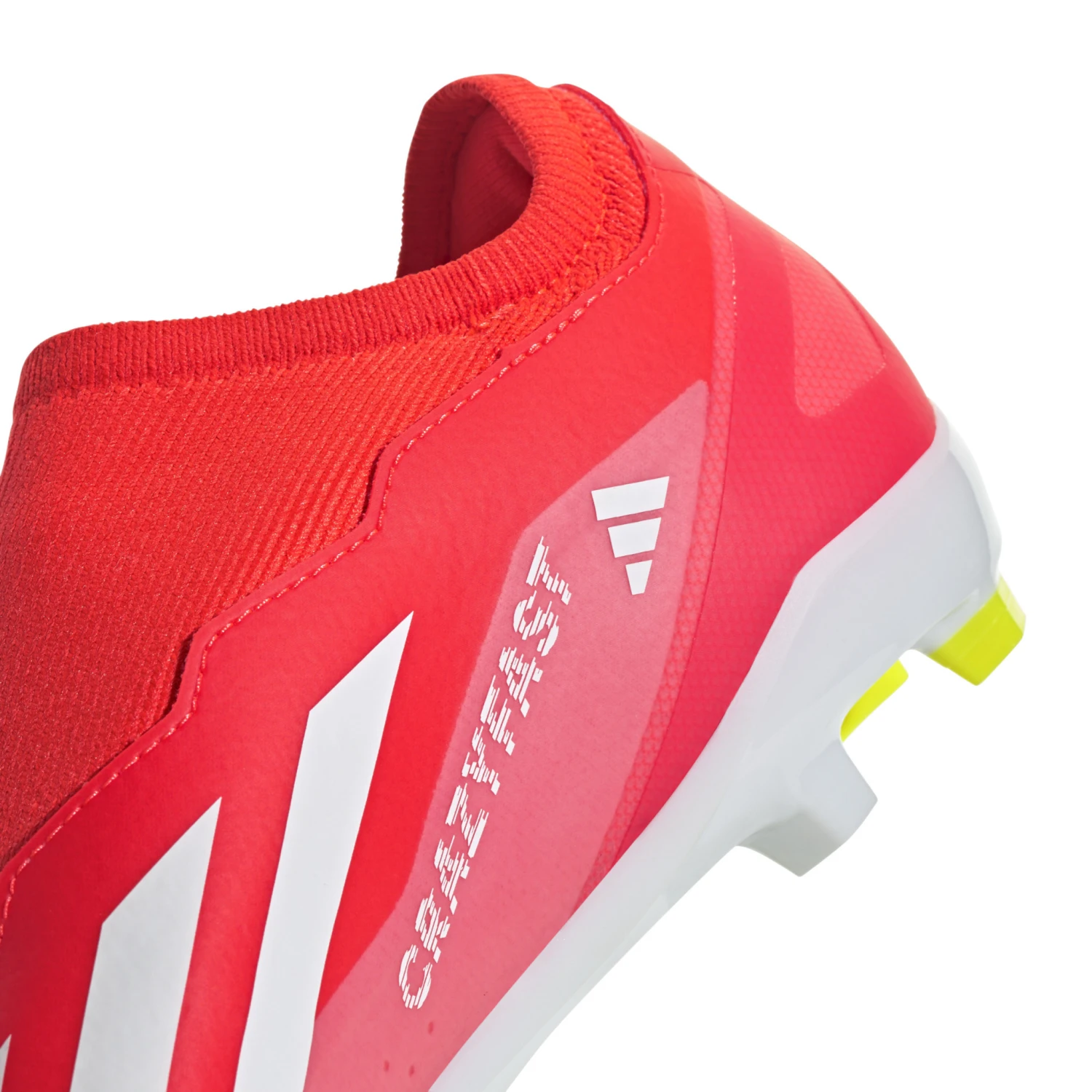 Nothing beats the rush of pure speed. Change the game in an instant and leave defenders trailing with lightweight adidas X Crazyfast. Keeping you stable at full tilt on dry grass, these laceless soccer cleats sit on a specialist firm ground outsole. Featuring extra layers only where reinforcement is required, their coated textile upper comes with a flat-knit collar for solid lockdown.