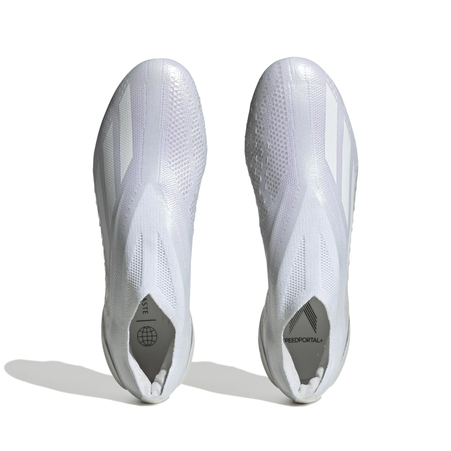 Mind. Body. Cleat. Connected in the blink of an eye. Pull on adidas X Speedportal to unlock speed in all its dimensions. Lightweight and foot-hugging, the Speedskin upper on these laceless soccer cleats has a stretchy adidas PRIMEKNIT collar, carbon heel lock and stability fins for a secure fit at high speeds. Two extra forefoot studs on the Speedframe outsole help boost your acceleration on firm ground. Made with a series of recycled materials, this upper features at least 50% recycled content. This product represents just one of our solutions to help end plastic waste.