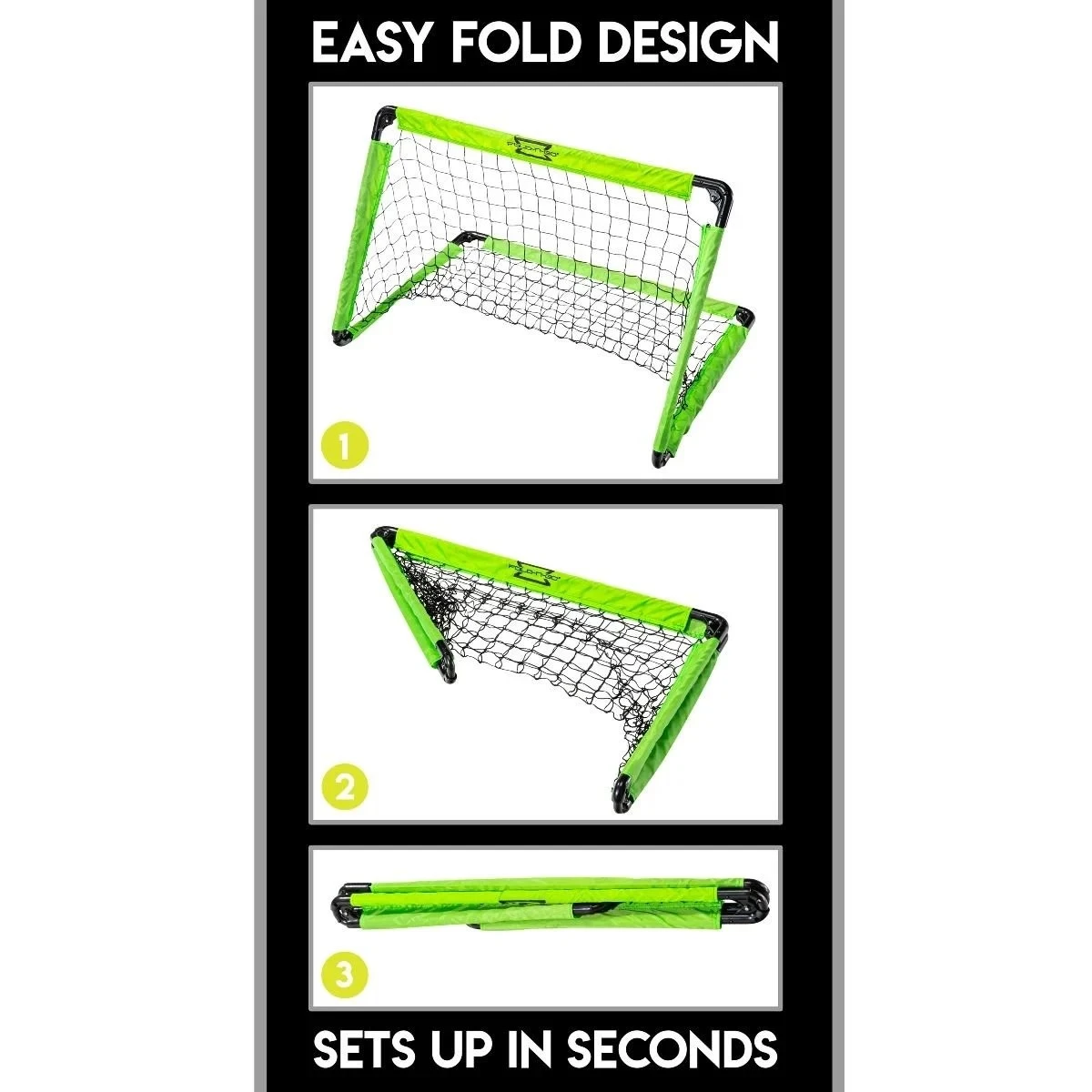 - (1) soccer goal with easy fold assembly