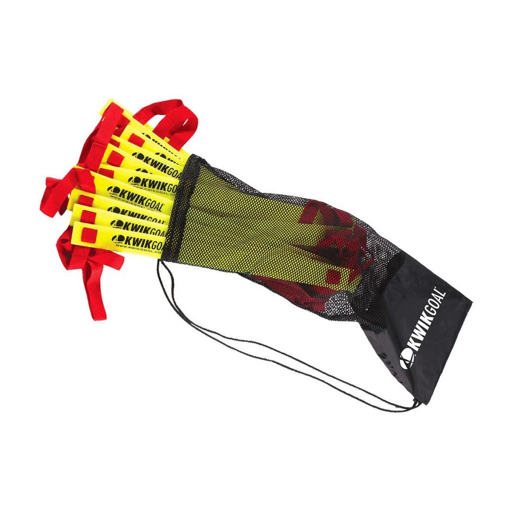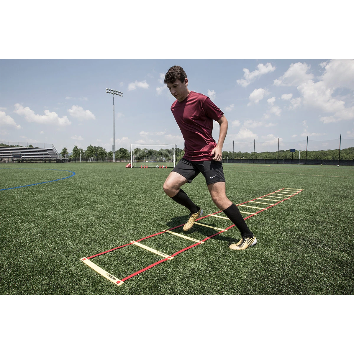 The Kwik Goal Agility Ladder encourages players to focus on drills that train explosive first steps and movements, agility, coordination and balance, as well as speed. This Agility Ladder is 20 feet long and contains 14 fixed rungs per ladder. Each ladder includes a black, mesh carry bag which makes for easy storage and transportation.